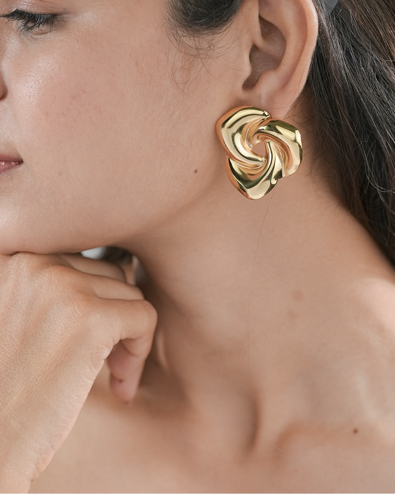 Golden Swirl earrings are designed in a bold spiral shape with a high-shine gold finish. The smooth curves and artistic form make them a striking statement piece for any look.