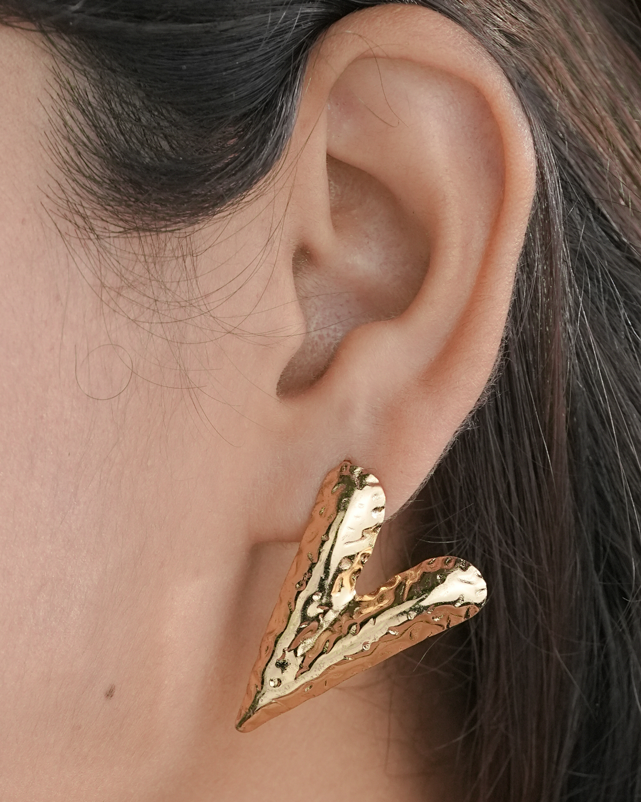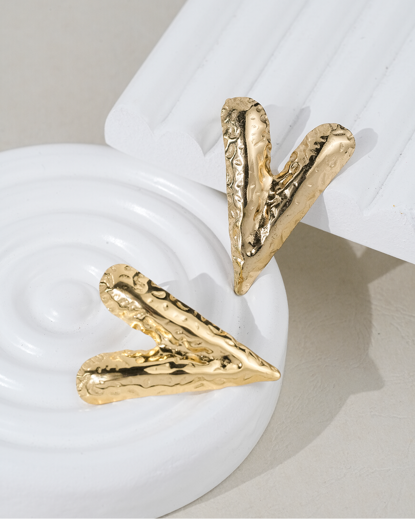 Inspired by raw beauty and imperfect elegance, the Elira Heart Studs celebrate individuality. The hammered surface reflects natural textures like rocks and ripples, making each piece feel earthy yet modern.