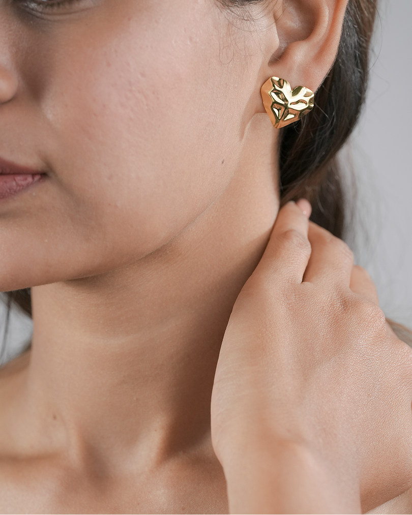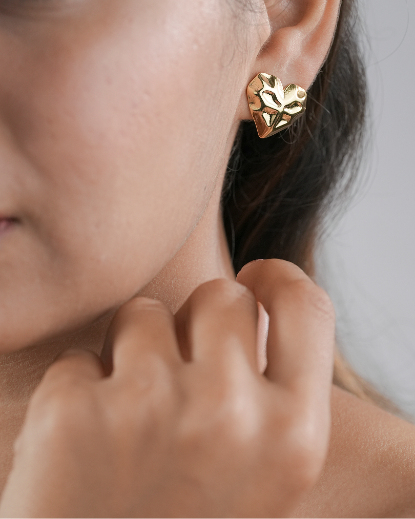 The Heart Glitch Earrings by Zukiie Jewels are a modern take on love with an edge. With their bold heart shape and abstract, crumpled texture in high-polish gold, these earrings break symmetry to celebrate the beauty of imperfections.