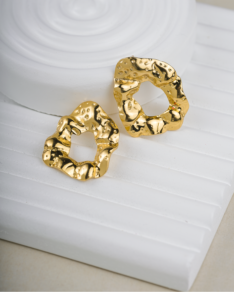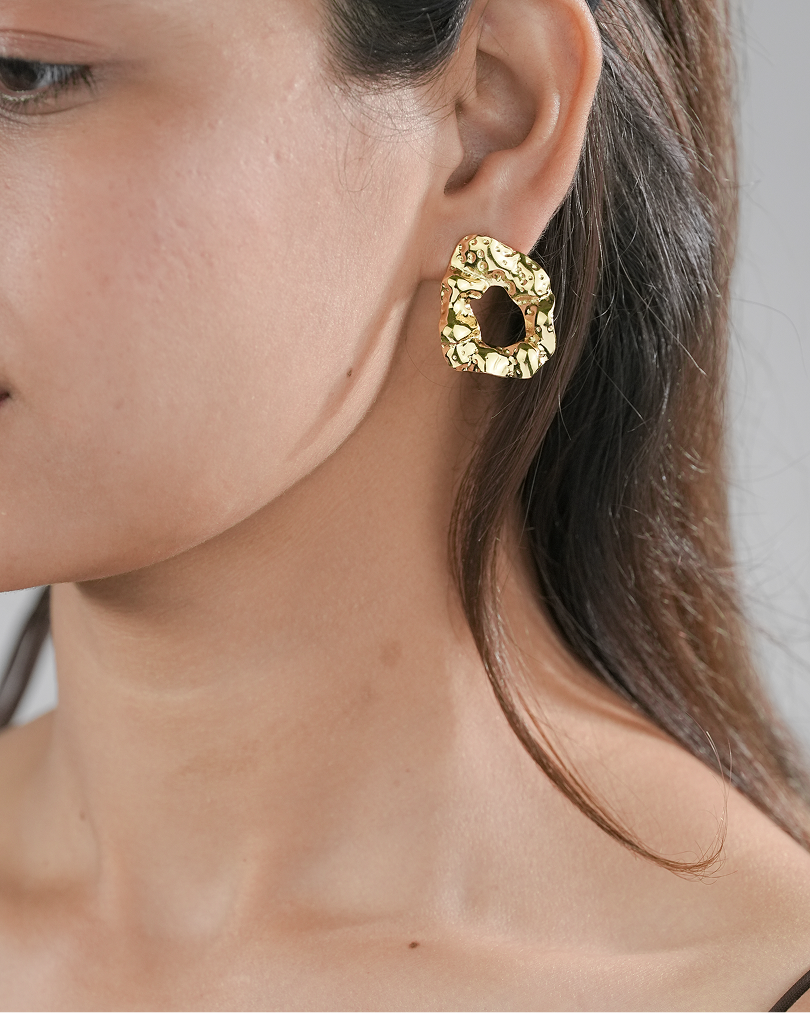 These earrings are inspired by natural rock shapes and raw textures. Their freeform design shows that beauty doesn’t have to be perfect; it can be strong, unique, and bold in its own way.