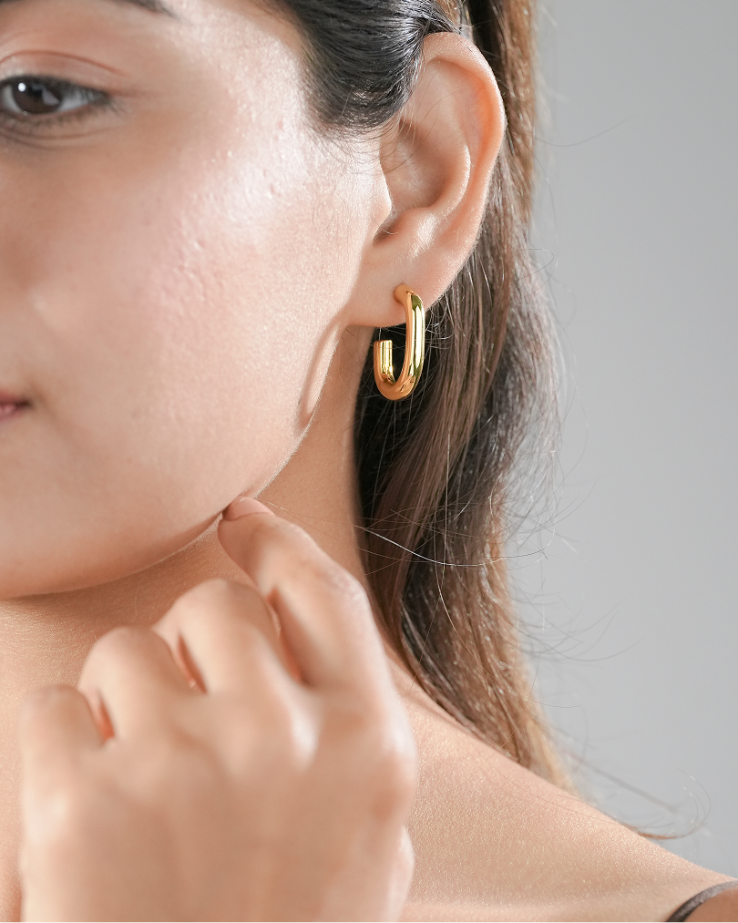 The Urbencoof Earrings by Zukiie Jewels are the definition of sleek urban minimalism. With their sculptural U-shape and ultra-polished golden finish, they bring effortless sophistication to your everyday look.