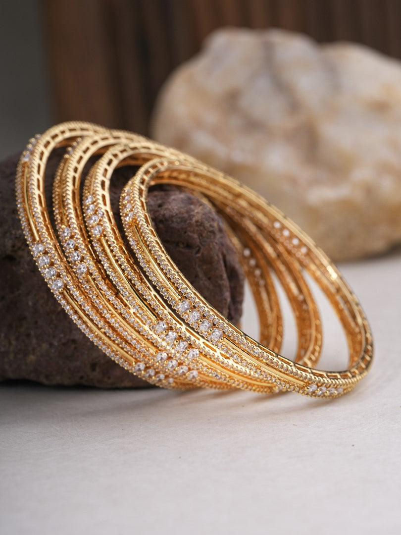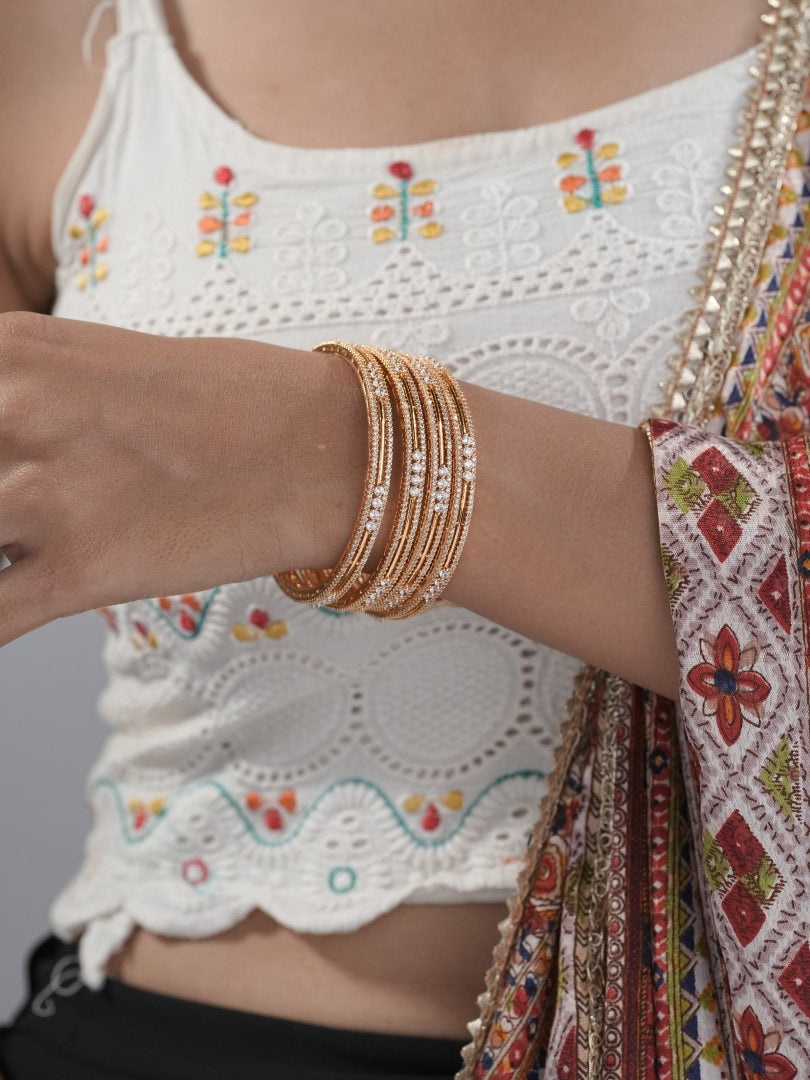 Pair them with a classic silk saree, a velvet lehenga, or even a sleek black gown for festive soirées. Stack all together or mix with plain gold bangles for a richer, layered look.