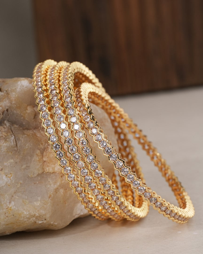 Wear them as a full stack with embroidered lehengas or pair just two with a satin blouse and jeans for Indo-western fusion. Let their sparkle do the talking day or night.